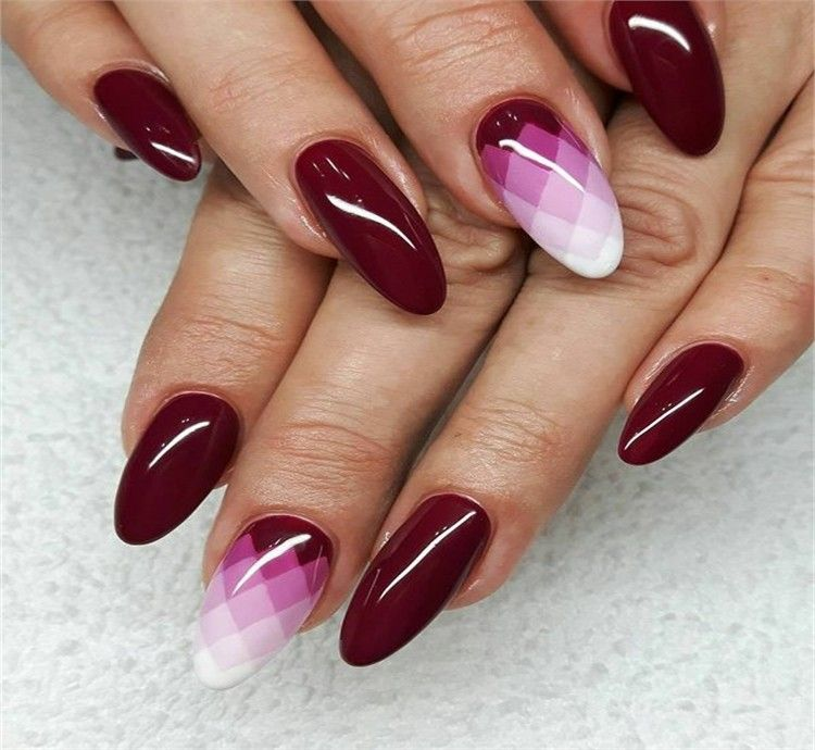 - Kontras dengan Putih atau Nude: Untuk tampilan yang lebih modern, kombinasikan nail art burgundy dengan warna putih bersih atau nude yang lembut. Misalnya, buat pola geometris atau garis-garis tipis untuk menciptakan kontras yang menarik.