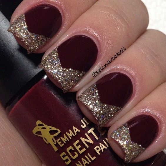 - Aksen Emas atau Glitter: Paduan antara burgundy dan emas adalah kombinasi yang tak pernah salah. Tambahkan aksen emas pada satu atau dua kuku, atau gunakan glitter emas di ujung kuku Anda untuk sentuhan kemewahan.
